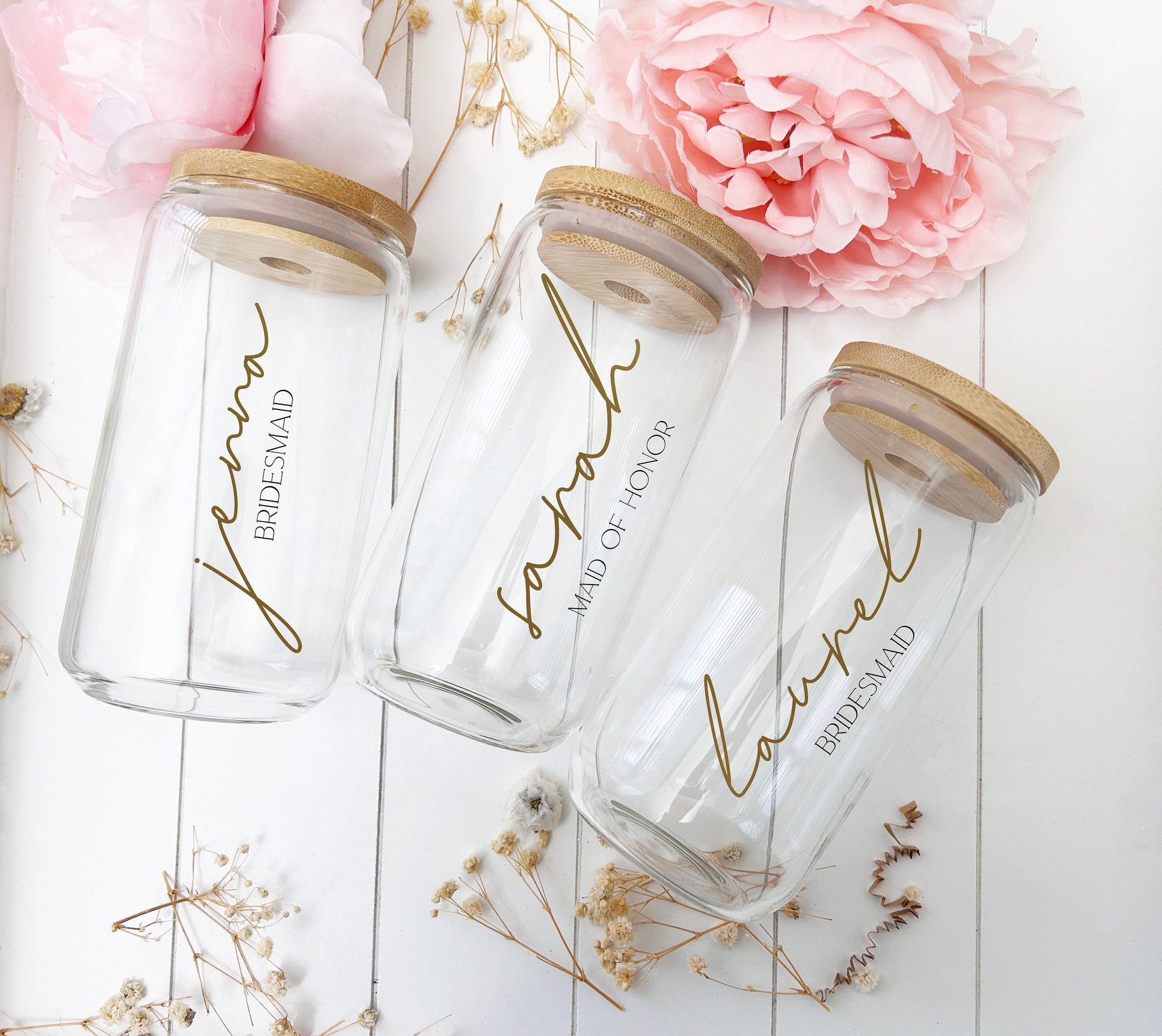 16oz Glass Tumbler with Lid and Straw/ Glass Tumbler w/Bamboo lid/ Bridal Party Gift/ Bridesmaid Gift/Bachelorette Gifts Boho Wedding Gifts