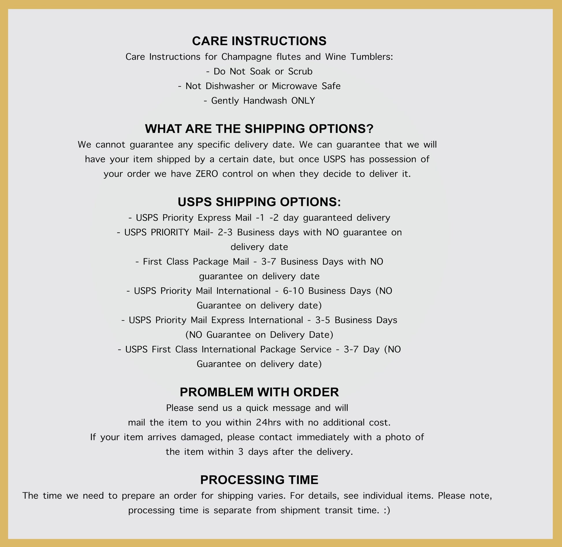 Care Instructions for Champagne flutes and Wine Tumblers: