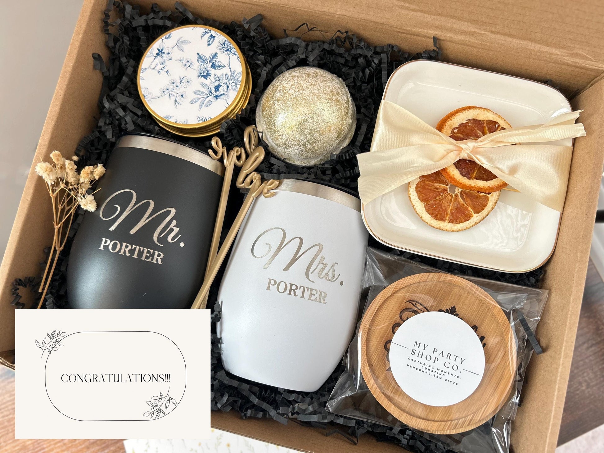 Elegant Congratulations Gift Basket for Newlyweds, Engaged Couples - Mr. & Mrs. Wedding Celebration Set