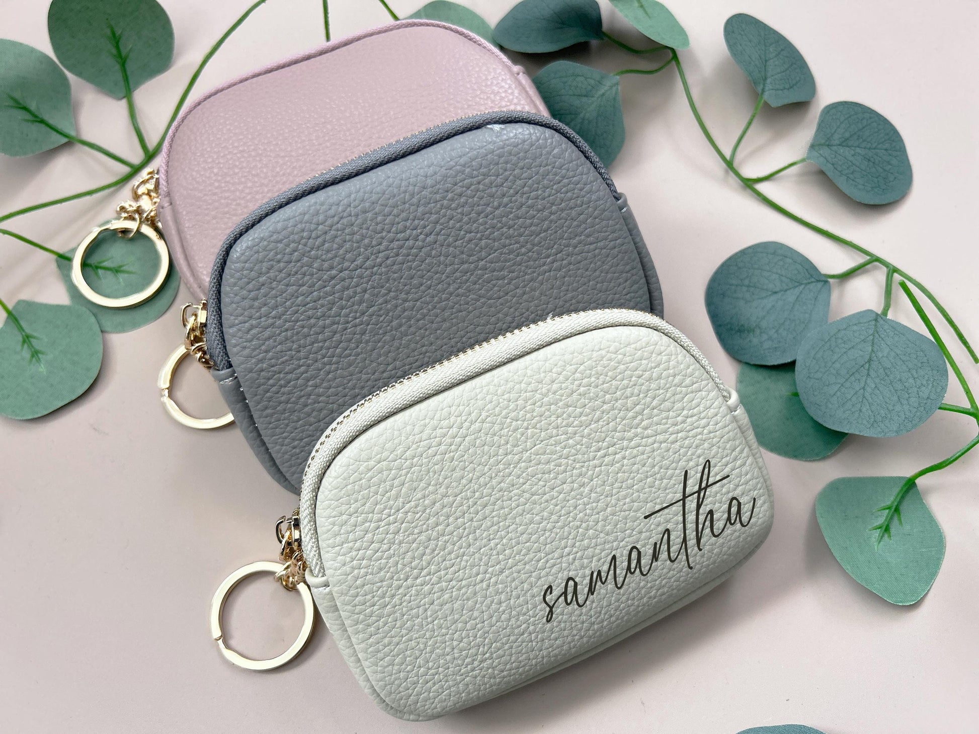 DESCRIPTION: Stay organized in style with this personalized PU leather pouch, perfect for women and girls. Made from smooth, easy-to-clean faux leather, it features a secure zipper and a built-in section to hold your cards. Add your name or a special word to make it truly your own! Great for everyday use, gifting, or keeping your small essentials in one place-simple, practical, and made just for you.