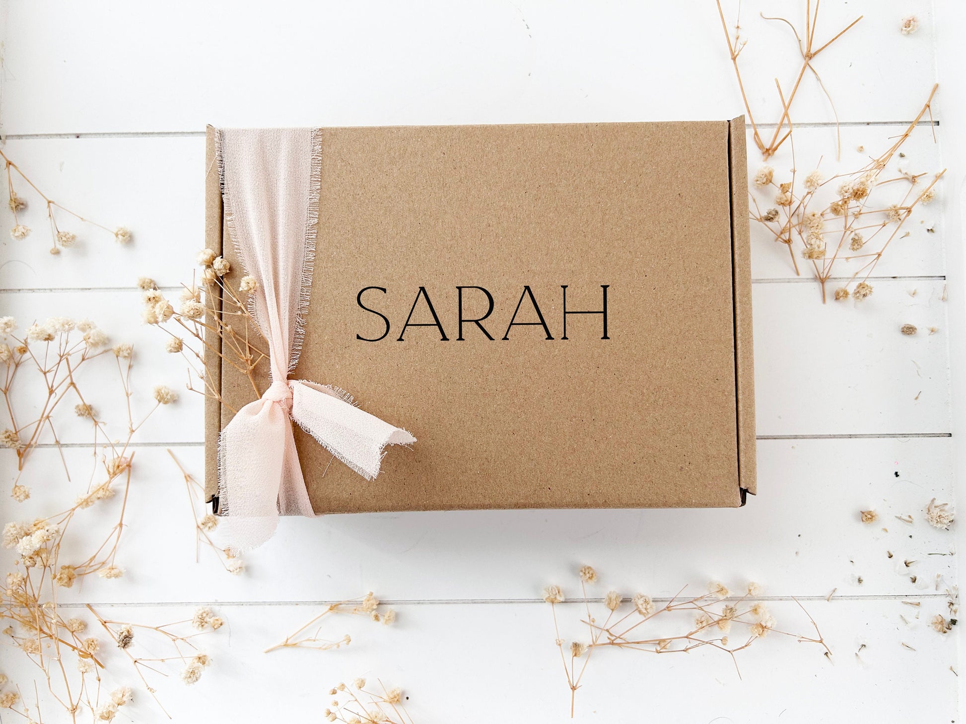 - Personalization Jewelry Box + Gift Box with ribbon and name on it.