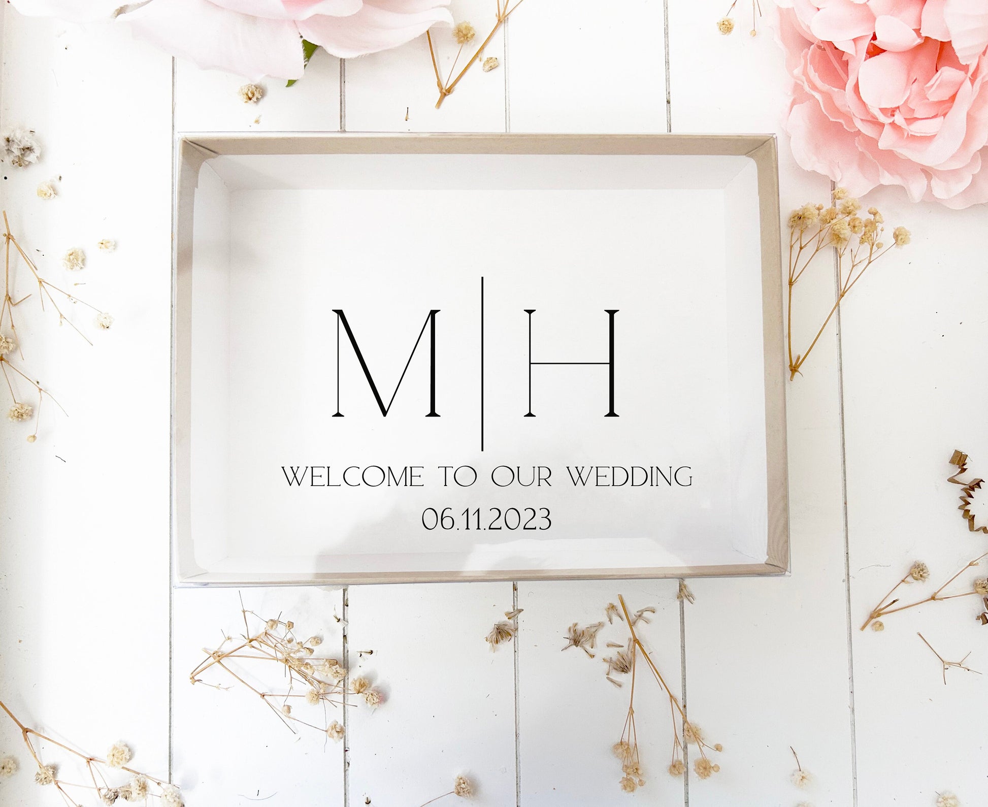 These white welcome boxes are perfect way to thank wedding guests for attending your special event.