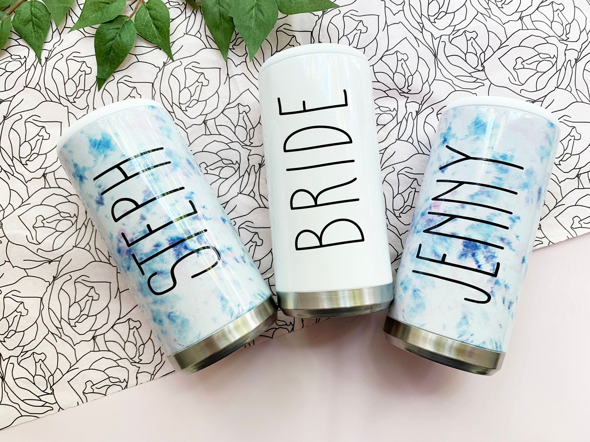 Tie Dye Skinny Can Cooler for Bridesmaid, bridal Party Gift, Personalized Bridesmaid Gift, Maid of Honor Gift, Insulated Can Cooler